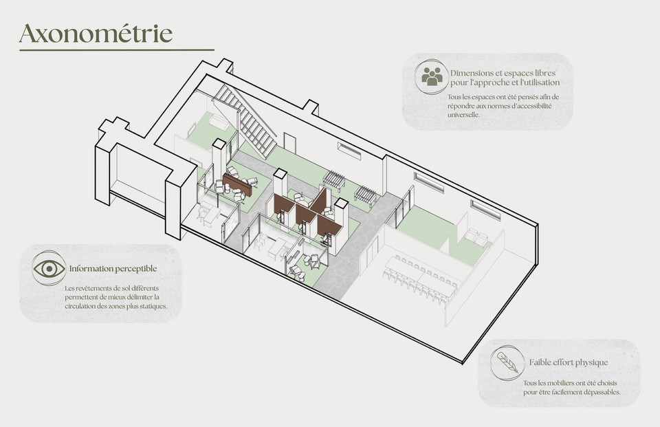 Un autre atelier thématique de 3e année a permis à des étudiant·es de collaborer avec l’organisme communautaire PAS de la rue dans le cadre d’une recherche du professeur invité David Smith. Les étudiant·es ont ainsi eu à se concentrer particulièrement sur les enjeux d’accessibilité dans la conception d’un nouvel espace pour cet organisme ayant pour mission de soutenir les personnes de 55 ans et plus en situation d’itinérance ou de grande précarité résidentielle. Ce défi permettait aux étudiant·es de se familiariser avec les méthodes de conception participative tout en découvrant la recherche en aménagement, en partenariat avec le Centre d'étude en responsabilité sociale et écocitoyenneté du Cégep de Rosemont où David Smith est chercheur.
