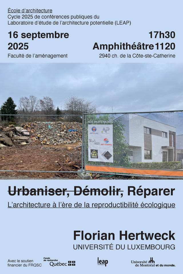 Du 24 septembre au 29 octobre 2025 – Faculté de l’aménagement, École d’architecture