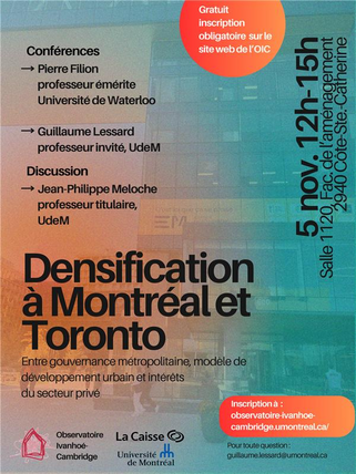 Dans le cadre des activités de l'Observatoire Ivanhoé Cambridge, l'OIC vous convie à une conférence gratuite sur la densification résidentielle à...