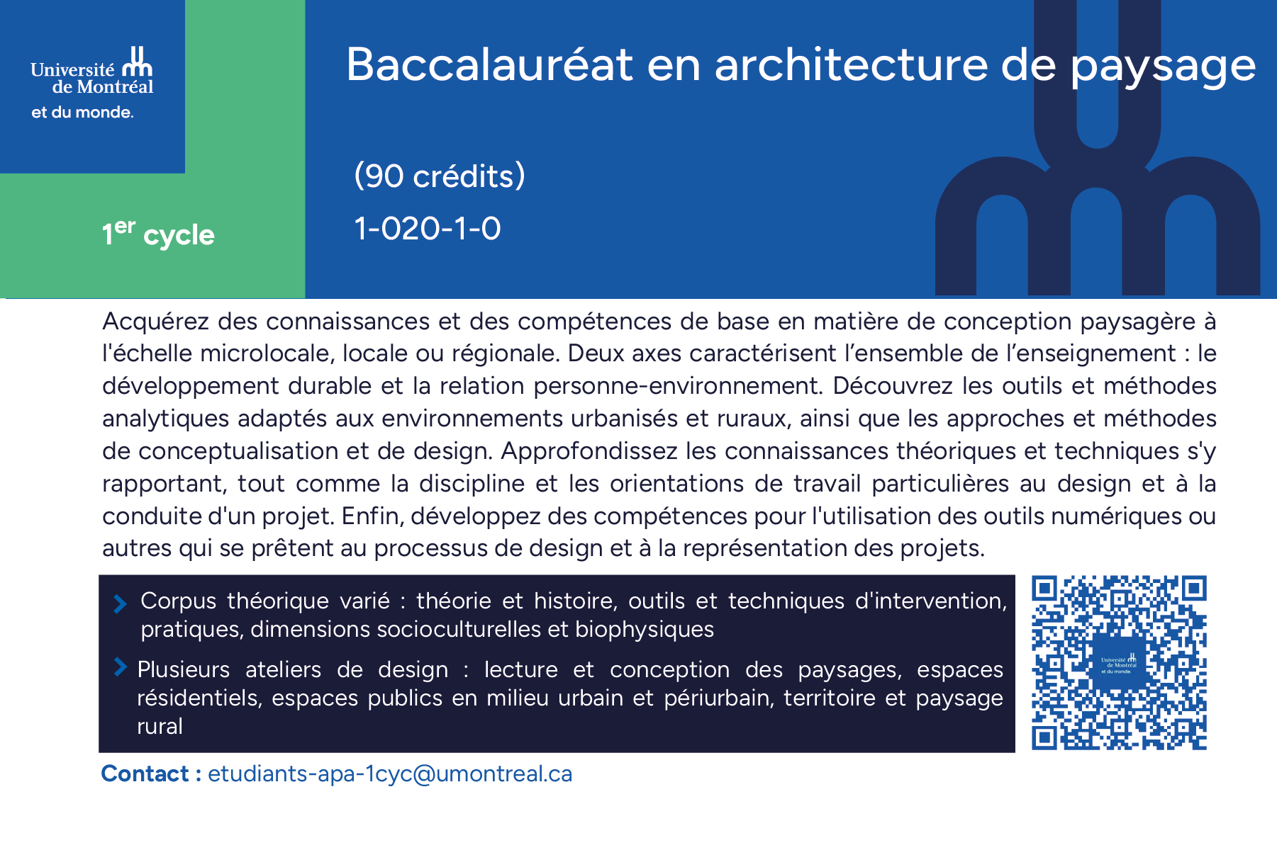 BACCALAURÉAT EN ARCHITECTURE DE PAYSAGE